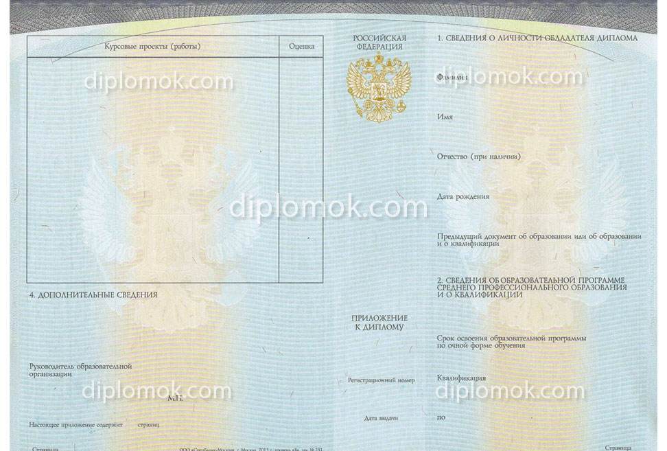 Приложение к диплому ссуза нового образца 2014-2026 года. Оригинальный Гознак. Подробнее о дипломе ССУЗа 2014-2026